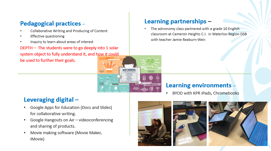 Below is a summary of some of the connections to Pedagogy, Partnerships, Digital Technology and the Learning Environment